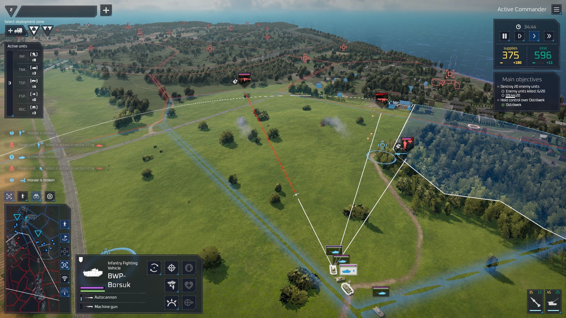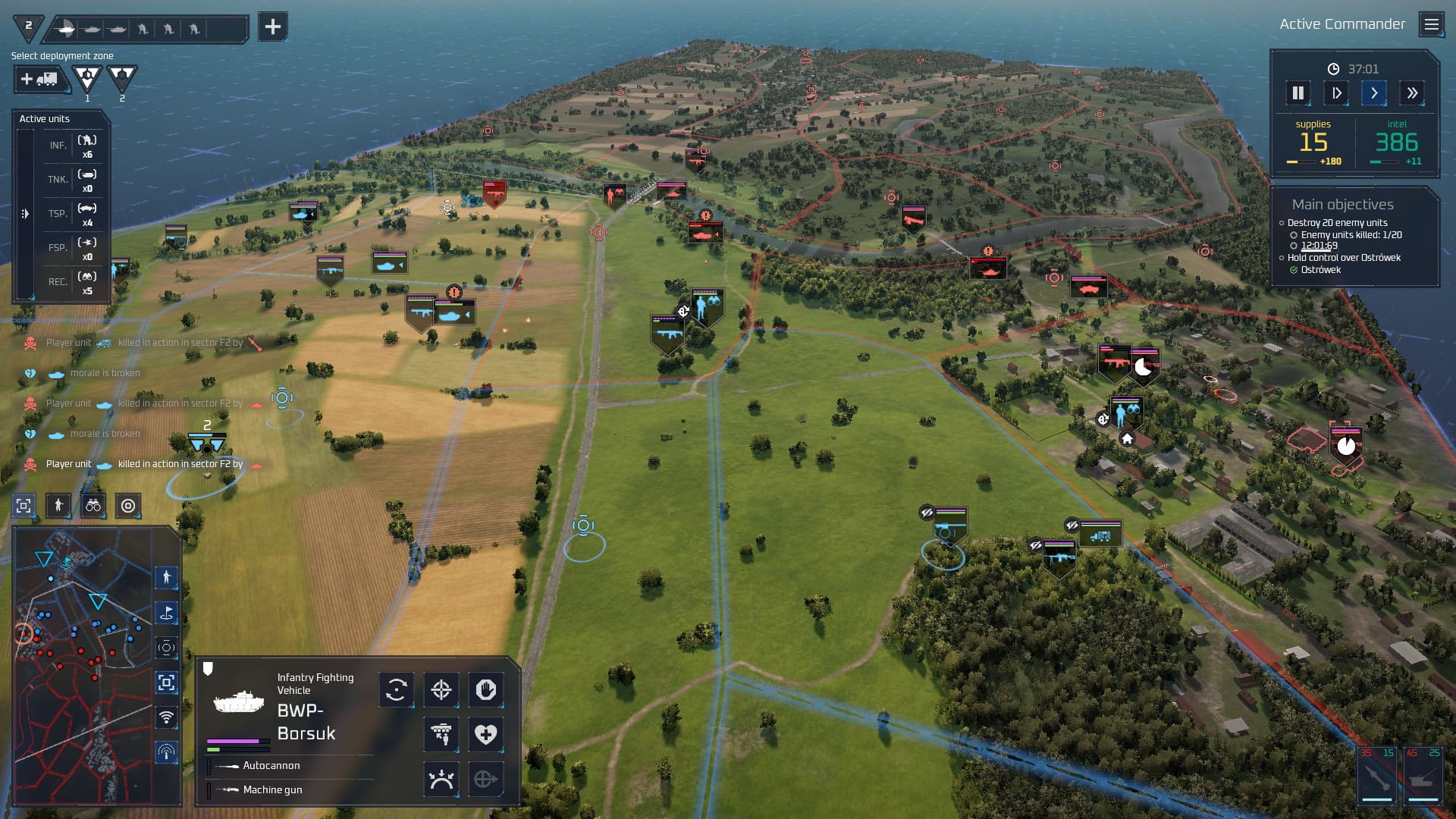 L’un des concepts principaux du jeu réside dans l’utilisation de camions logistiques (dans la démo le JELCZ 442.32 pour les passionnés d’équipement Polonais) transformables en postes avancés, que vous utiliserez pour déployer vos unités et soigner les blessés. Fini le déploiement en bout de carte, vous pouvez établir vos points d’apparition où vous le souhaitez, tant qu’il s’agit d’un secteur sous votre contrôle. Le principe étant réversible, vous pouvez également tenter un déploiement près de la ligne de front puis rapatrier votre base en arrière dès que ça sent le roussi.