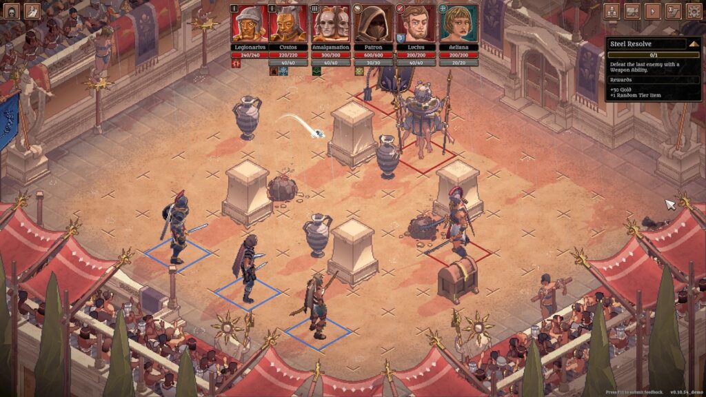 Menez votre équipe de gladiateurs au sommet -ou à la mort- dans ce chouette jeu de tactique au tour par tour façon Into The Breach intégrant un pan stratégique pour gérer la croissance de vos guerriers. Une agréable surprise.