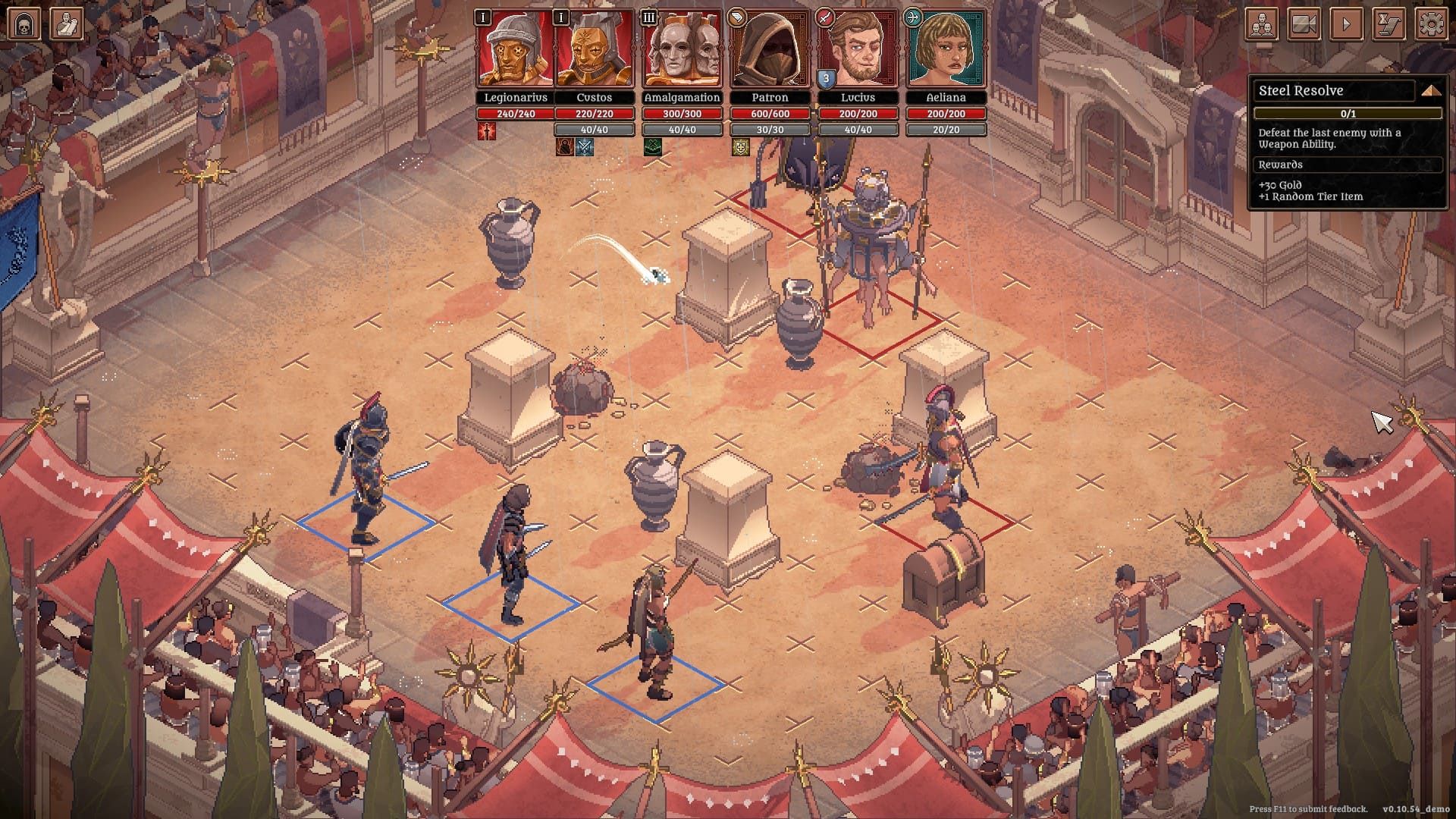Menez votre équipe de gladiateurs au sommet -ou à la mort- dans ce chouette jeu de tactique au tour par tour façon Into The Breach intégrant un pan stratégique pour gérer la croissance de vos guerriers. Une agréable surprise.